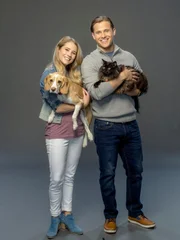 Die Hundebesitzerin Laura (Cassidy Gifford, li.) und der Katzenbesitzer Spencer (Wyatt Nash, re.) müssen sich ein Haus teilen.Bild: © Brendan Meadows / Hallmark Media