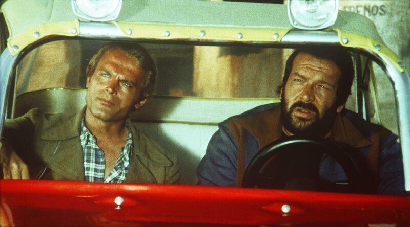 Die beiden schlagkräftigen Haudegen Kid (Terence Hill, l.) und Ben (Bud Spencer, r.) sind und bleiben zwei unzertrennliche Freunde. Bei einem Autorennen gewinnen sie einen lang ersehnten Buggy ...Bild: © Das Vierte