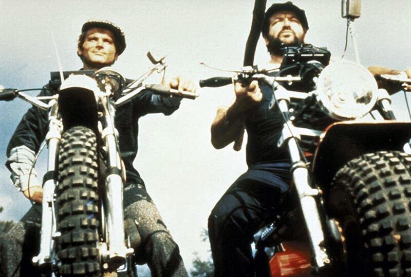Die beiden schlagkräftigen Haudegen Kid (Terence Hill, l.) und Ben (Bud Spencer, r.) sind und bleiben zwei unzertrennliche Freunde. Bei einem Autorennen gewinnen sie einen lang ersehnten Buggy ...Bild: © Columbia Pictures