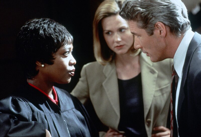 Der Staranwalt Martin Vail (Richard Gere, li.) übernimmt die Verteidigung von Aaron Stampler. Die Staatsanwältin Janet Venable (Laura Linney, re.) vertritt die Anklage unter der Leitung des korrupten John Shaughnessy, der für Aaron die Todesstrafe fordert.