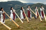 Das Tulnic-Ensemble von Apuseni: Früher wurde mit dem Tulnic von Berg zu Berg kommuniziert, heute droht die Tradition auszusterben.Bild: © Accentus Music/Mitja Hagelueken